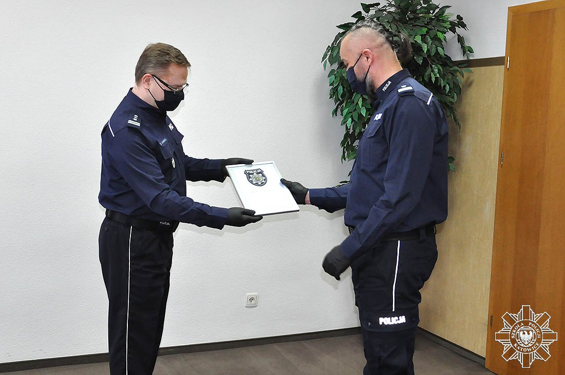 W imieniu Komendanta Szkoły Policji w Katowicach zastępcy Komendanta insp. dr Gabriela Socha i insp. Zbigniew Chrzęstek podziękowali policjantom za wieloletnią służbę na rzecz naszej szkoły oraz za trud włożony w kształcenie i wychowanie licznej rzeszy policjantów. Podkreślili również, że wszyscy kończący służbę włożyli przez lata wiele serca w swoją pracę dydaktyczną, niektórzy z nich od początku istnienia naszej szkoły. Jednocześnie byli zawsze wspaniałymi podwładnymi, współpracownikami i kolegami – funkcjonariuszami Policji.