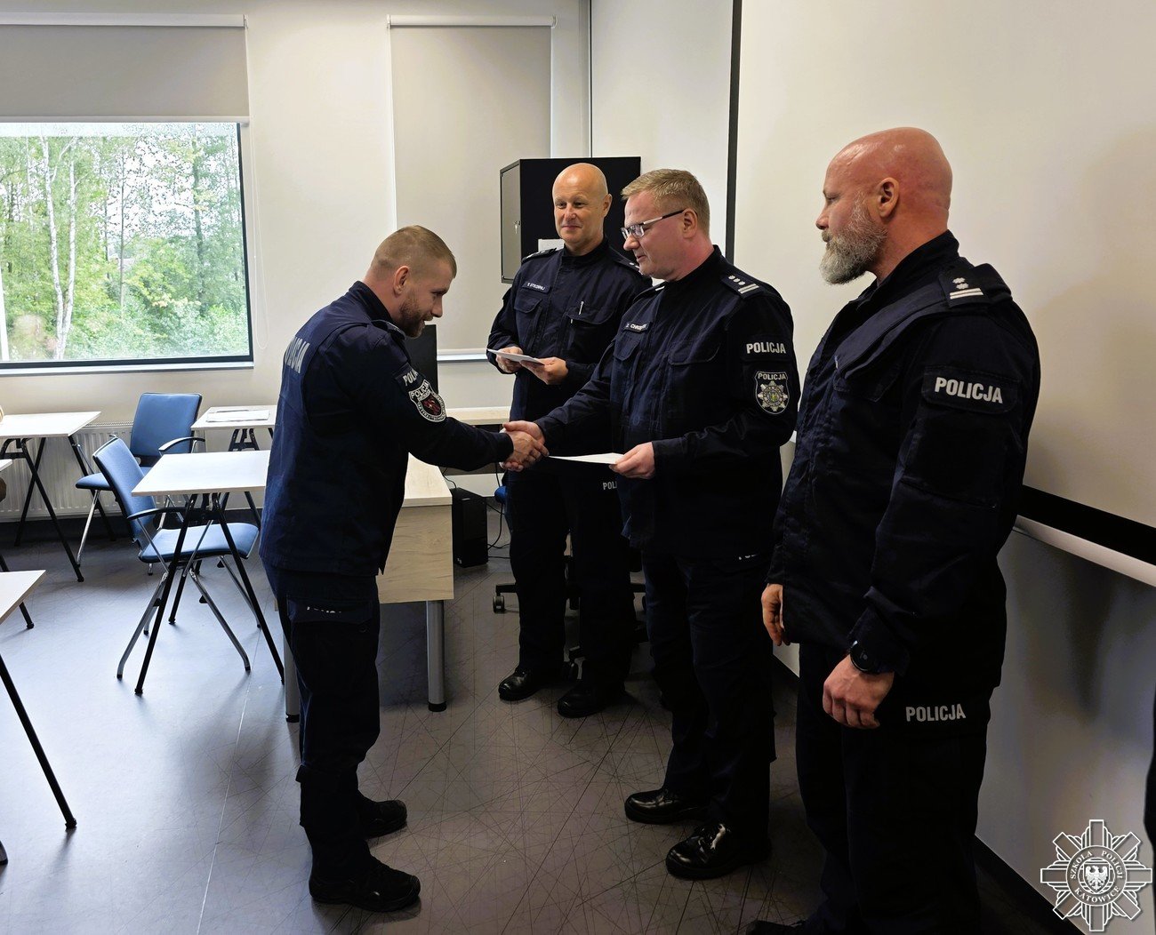 Na zakończenie wydarzenia uczestnicy otrzymali certyfikaty, które wręczyli: Zastępca Komendanta Szkoły Policji w Katowicach właściwy w sprawach logistycznych insp. Zbigniew Chrzęstek, mł. insp. Maciej Lemanowicz oraz mł. insp. Tomasz Stechnij.