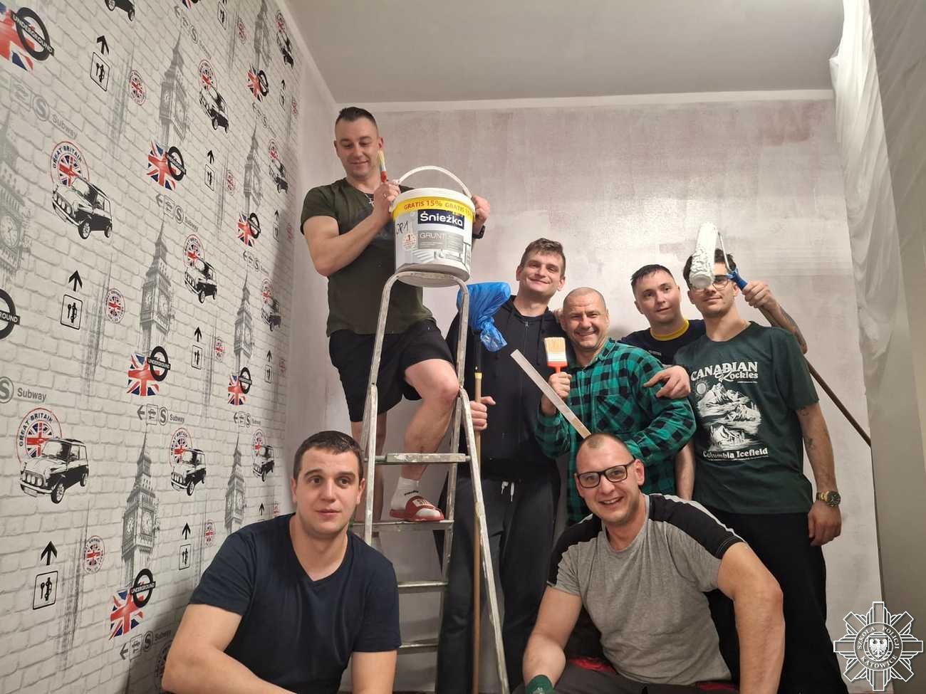 Po zakończonych zajęciach służbowych słuchacze szkolenia zawodowego SZP-11/25 gr. 4 post. Damian Goszczurny, post. Łukasz Ciszowski, post. Jakub Szczypior oraz SZP-13 /25, gr. 8 - post. Kacper Śmietana, post. Patryk Kasprzyk, post. Jakub Madera w czasie wolnym od obowiązków dydaktycznych udali się do placówki Opiekuńczo- Wychowawczej. Celem ich działań było odnowienie pomieszczeń mieszkalnych w których na co dzień przebywają wychowankowie, tak aby stworzyć im bardziej przyjazne i komfortowe warunki do nauki oraz wypoczynku. Początkowo zaplanowano remont dwóch pokoi, jednak po rozmowach z dziećmi oraz rozpoznaniu ich potrzeb podjęto decyzję o rozszerzeniu działań o trzeci pokój – przeznaczony dla chłopca, który w poniedziałek obchodzi swoje urodziny.