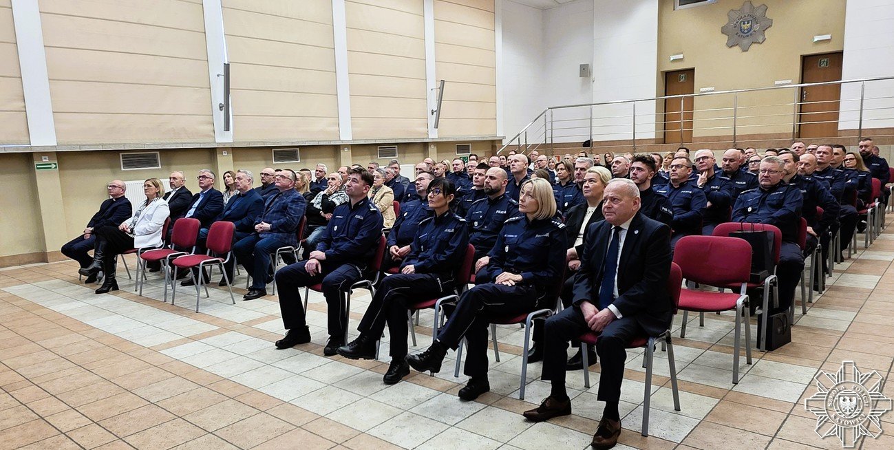 9 stycznia br. w naszej szkole odbyło się spotkanie noworoczne. Gospodarzami wydarzenia byli Komendant Szkoły Policji w Katowicach insp. Rafał Stanisławski wraz z Zastępcami. W spotkaniu uczestniczyli m.in.: Dyrektor Biura Koordynacji Postępowań Kwalifikacyjnych i Szkolenia Policji insp. Sylwia Majewska-Mazepa, Pełnomocnik Marszałka Województwa Śląskiego ds. promocji obronności i wychowania patriotycznego płk WP w st. sp. Zbigniew Piątek, prezes Zarządu Stowarzyszenia „Rodzina Policyjna 1939 r.” zs. w Katowicach Grzegorz Grześkowiak, kapelan szkoły ks. Grzegorz Węglorz, przedstawiciele związków zawodowych policjantów i pracowników cywilnych, a także emeryci policyjni skupieni przy kole nr 33 oraz kadra naszej szkoły.