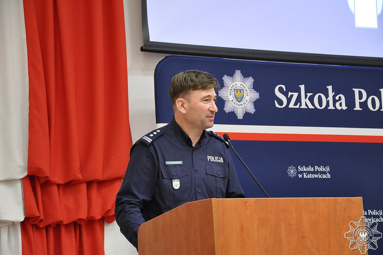 Następnie Komendant Szkoły Policji w Katowicach insp. Rafał Stanisławski złożył zebranym noworoczne życzenia – m.in. pomyślności oraz wielu pozytywnych doświadczeń w życiu zawodowym i osobistym.
