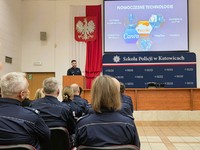Spotkanie rozpoczęło się prezentacją przygotowaną przez starszego wykładowcę Wydziału Metodyki i Organizacji Szkolenia podkom. Michała Mikołajczyka dotyczącą wykorzystania sztucznej inteligencji w szkolnictwie policyjnym. Omówiono także funkcjonowanie platformy e-learningowej Moodle.