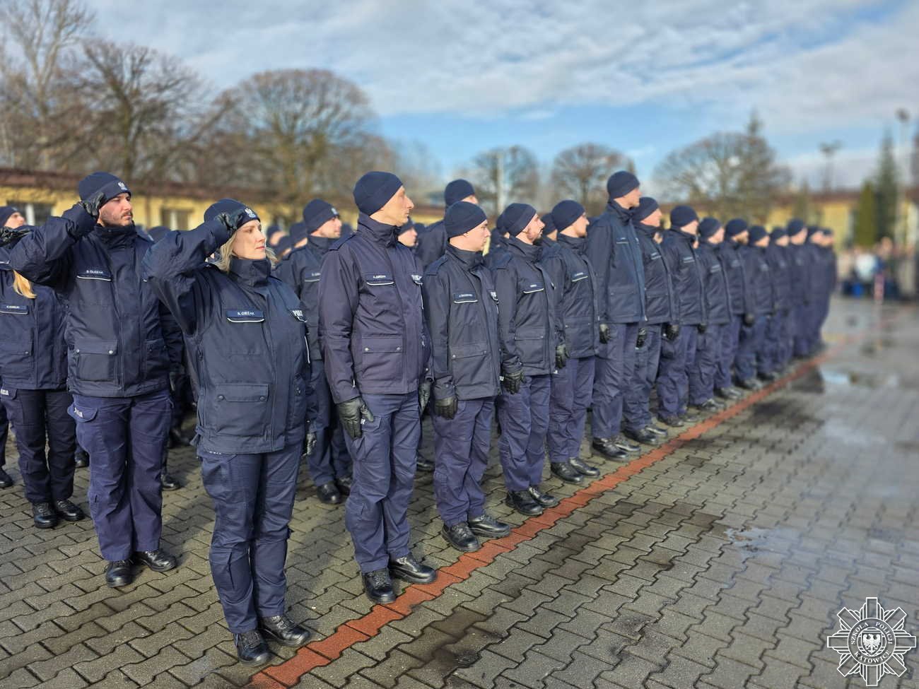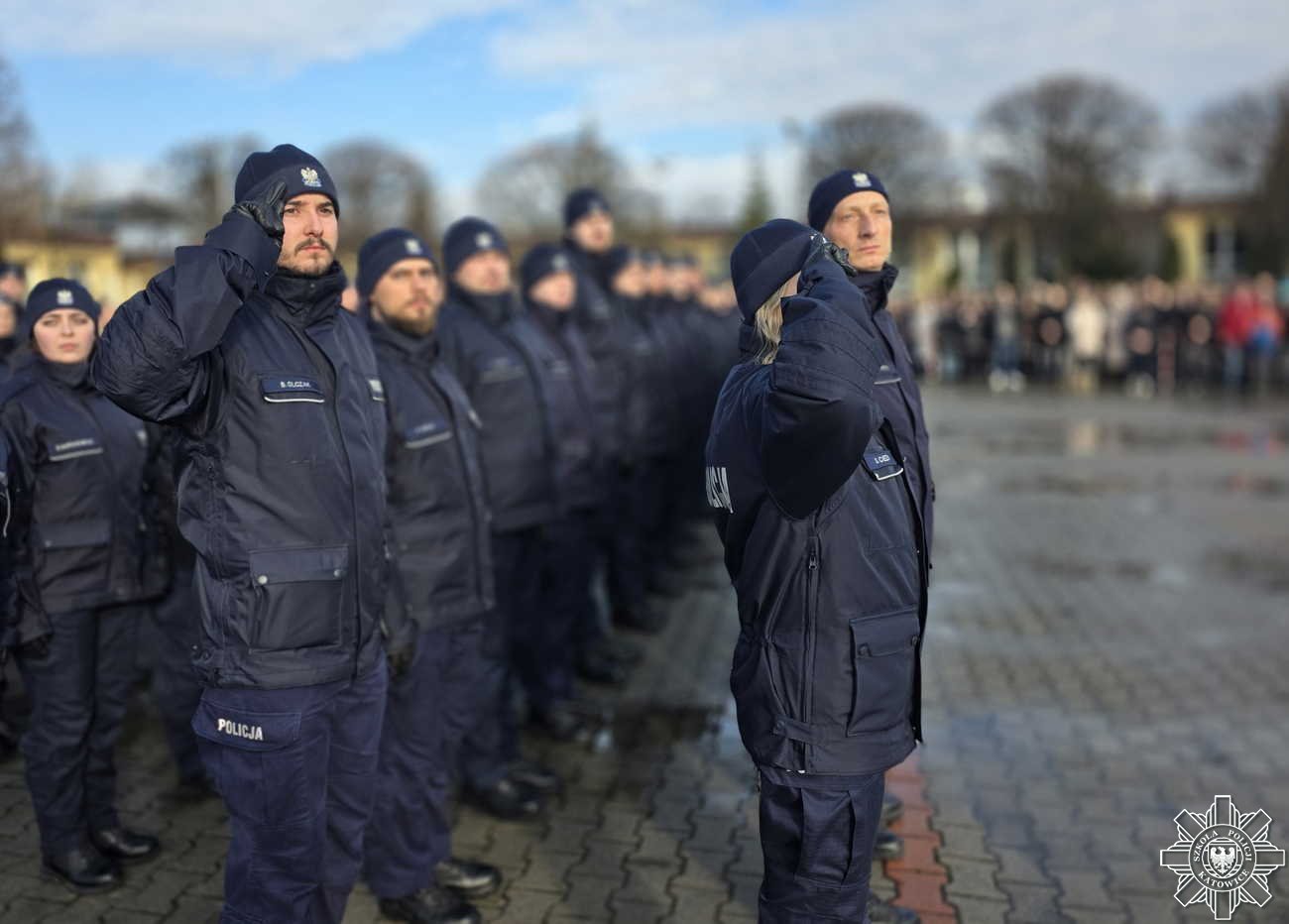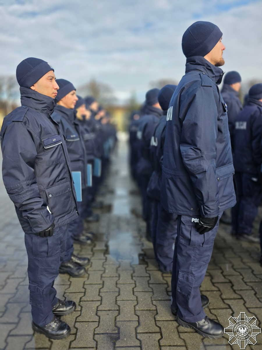 Nowi policjanci odebrali świadectwa ukończenia szkolenia, a najlepsi z nich zostali dodatkowo wyróżnieni listami gratulacyjnymi.