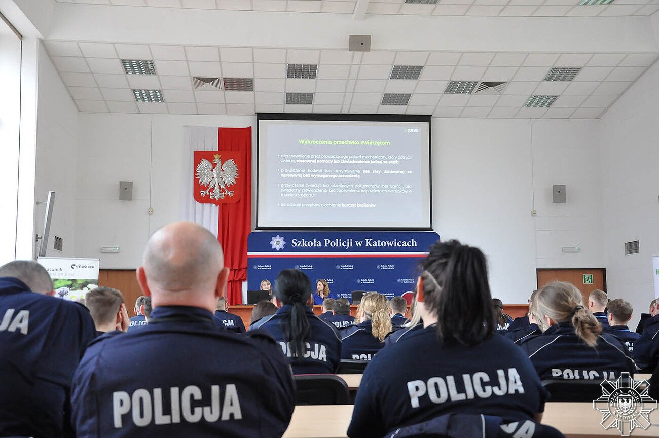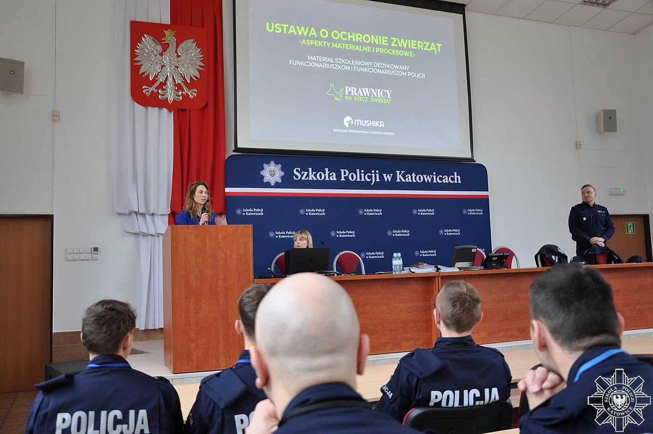 9 kwietnia 2026 r. w godzinach 10.00–14.00 w auli Szkoły Policji w Katowicach odbyło się specjalistyczne szkolenie pt. „Ustawa o ochronie zwierząt – aspekty materialne i procesowe”, skierowane do słuchaczy szkolenia zawodowego podstawowego oraz kadry dydaktyczno-wychowawczej.