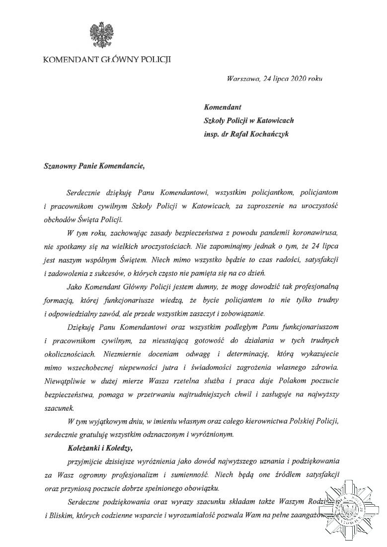 - Komendant Szkoły Policji w Katowicach z dniem 24 lipca 2020 r. przedterminowo mianował niżej wymienionych policjantów: