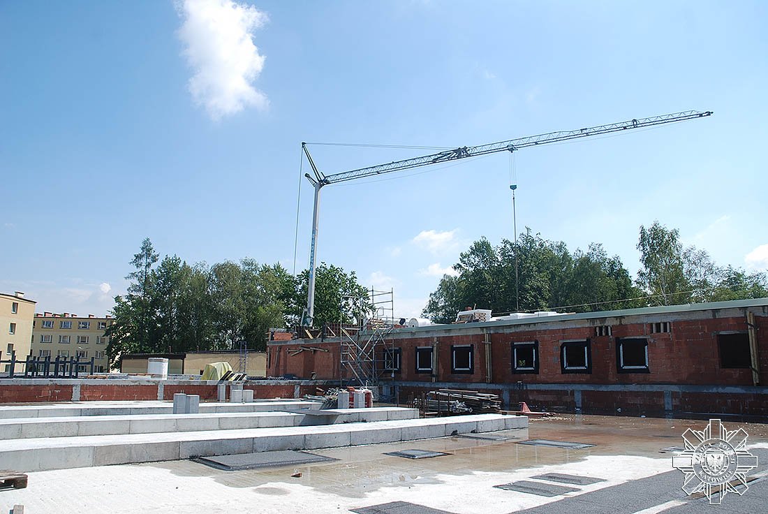 Ostatnie kilka tygodni zaowocowało wymurowaniem ścian segmentu A oraz piętra segmentu H, a także ukończeniem konstrukcji zbiornika retencyjnego. Zakończono również prace związane z wykonaniem stropów ostatnich segmentów, co spowodowało, iż bryła budynku jest już całkowicie wykonana. Jednocześnie wewnątrz obiektu strzelnicy wykonano częściowo ścianki działowe parteru oraz kanalizację sanitarną wraz z instalacjami wodno-kanalizacyjnymi. Dzięki montażowi stolarki okiennej aluminiowej budynek strzelnicy zaczyna się prezentować coraz okazalej.